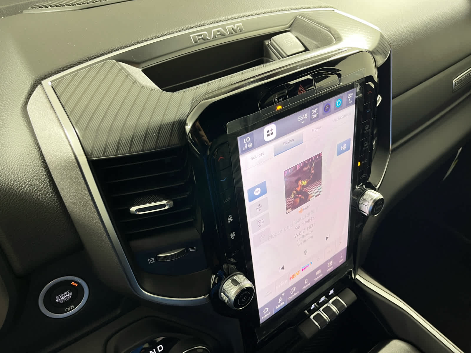BIG HORN LEVEL 2 EQUIPMENT GROUP Power Adjustable Pedals, Leather Wrapped Steering Wheel, Integrated Voice Command w/Bluetooth®, 12 Touchscreen Display, Glove Box Lamp, Auto Power-Folding Mirrors, 115V Auxiliary Rear Power Outlet, Media Hub w/2 Charge Only USBs, Heated Front Seats, Security Alarm, Black Premium Power Mirrors, Premium Overhead Console, 9 Amplified Speakers w/Subwoofer, Remote Tailgate Release, 115V Auxiliary Power Outlet, LED Dome Lamp w/On/Off Switch, Universal Garage Door Opener, 2nd Row In Floor Storage Bins, Sun Visors w/Illuminated Vanity Mirrors, LED Footwell Lighting, Power 2-Way Driver Lumbar Adjust, Rear Window Defroster, Rear View Auto Dim Mirror, Rear Power Sliding Window, GPS Navigation, Overhead LED Lamps, Auto Dim Exterior Driver Mirror, SiriusXM w/360L, NIGHT EDITION Tires: 275/55R20 OWL All Season, Accent Color Premium Power Mirrors, Exterior Mirrors w/Supplemental Signals, Black Headlamp Bezels, Exterior Mirrors Courtesy Lamps, Grille Black Surround Black Mesh, Auto Power-Folding Mirrors, Wheels: 20 x 9.0 Aluminum Painted Clad (DISC), Auto Dim Exterior Driver Mirror, Black Exterior Truck Badging, Anti-Spin Differential Rear Axle, Accent Color Door Handles, Black Interior Accents, Body Color Front Bumper, Body Color Rear Bumper w/Step Pads, Black Tail Lamp Bezels, RAM Grille Badge - Black, Black Painted Exterior Mirrors Caps, MOPAR FRONT & REAR RUBBER FLOOR MATS, TRANSMISSION: 8-SPEED AUTOMATIC (850RE) (STD), ENGINE: 3.6L V6 24V VVT ETORQUE UPG I (STD), BLACK, DELUXE CLOTH BUCKET SEATS Bucket Seats, Full Length Floor Console, Power Adjust 8-Way Driver Seat, Power 2-Way Driver Lumbar Adjust.