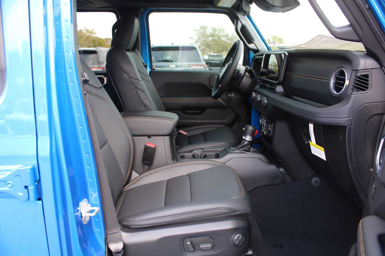 QUICK ORDER PACKAGE 24H SAHARA 3.6L V6 24V VVT UPG I Engine w/ESS, 8-Speed Automatic 850RE Transmission, Heated Front Seats, Body Color Fender Flares (2-Piece), Heated Steering Wheel, Corning Gorilla Glass, Security Alarm, Sahara, Remote Start System, Advanced Brake Assist, Freedom Panel Storage Bag, Rear Window Defroster, Rear Sliding Window, Automatic Headlamps, Air Conditioning w/Auto Temp Control, Deep Tint Sunscreen Windows, Central ADAS Decision Module (CADM), Full Speed Forward Collision Warning Plus, Emergency/Assistance Call, Front Door Locks 2-Door Passive Entry, Cluster 7.0 TFT Color Display, Power Heated Mirrors, Universal Garage Door Opener, Daytime Running Lamp System, Sahara Badge Neutral Gray, Premium Wrapped Steering Wheel, Sun Visors w/Illuminated Vanity Mirrors, LED HEADLAMP & FOG LAMP GROUP Daytime Running Lamps LED Accents, Front LED Fog Lamps, LED Premium Reflector Headlamps, 8-SPEED AUTOMATIC 850RE TRANSMISSION (STD), 3.6L V6 24V VVT UPG I ENGINE W/ESS (STD). Jeep Sahara with Hydro Blue Pearlcoat exterior and Black interior features a V6 Cylinder Engine with 285 HP at 6400 RPM*.