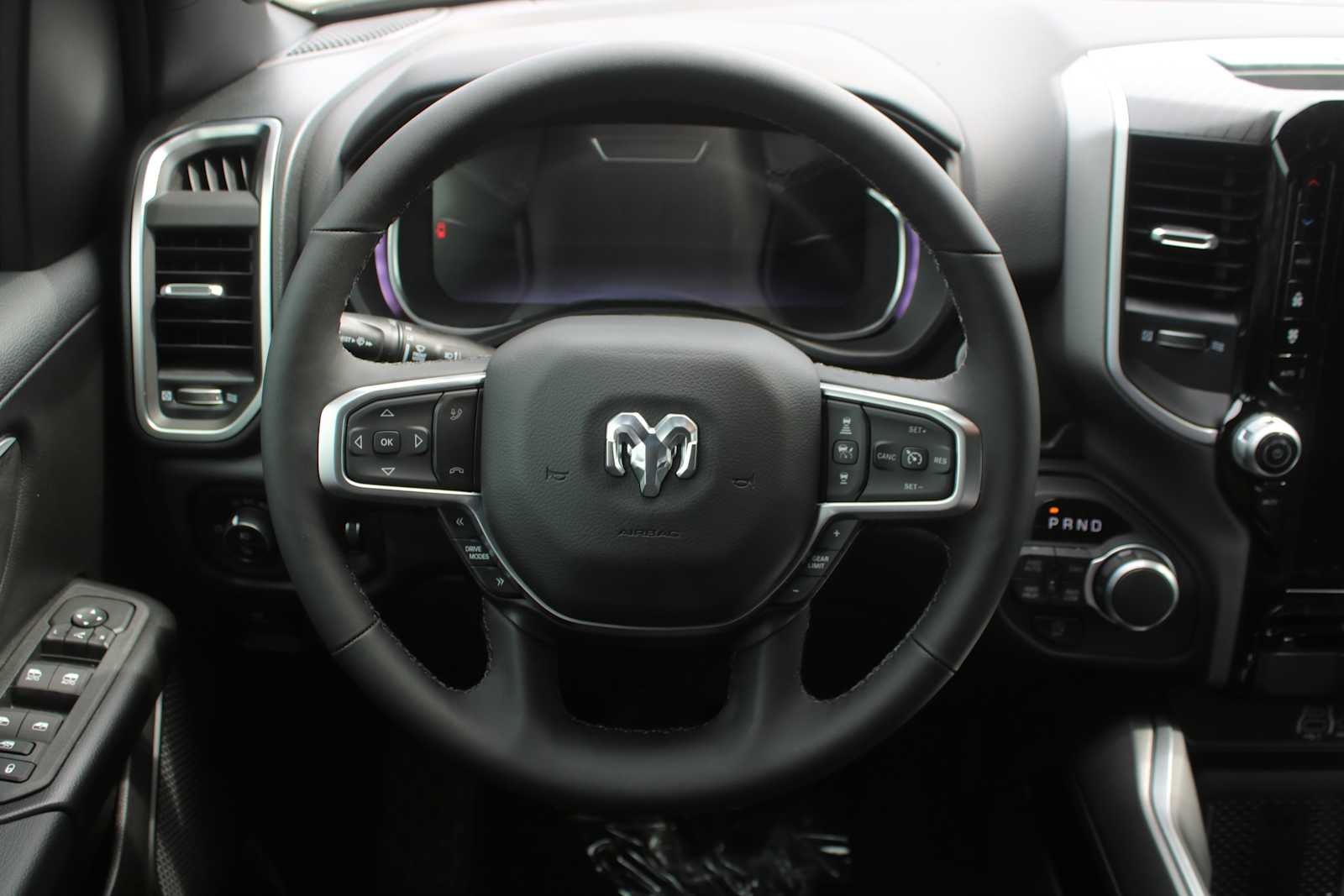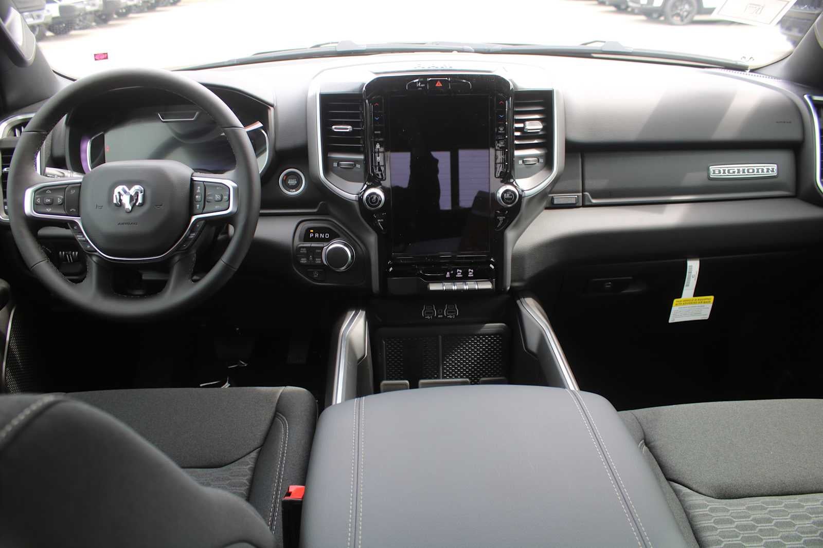 BIG HORN LEVEL 2 EQUIPMENT GROUP SiriusXM Radio Service, Power Adjustable Pedals, Leather Wrapped Steering Wheel, 12 Touchscreen Display, Glove Box Lamp, Auto Power-Folding Mirrors, 115V Auxiliary Rear Power Outlet, Media Hub w/2 Charge Only USBs, Heated Front Seats, Security Alarm, Black Premium Power Mirrors, Premium Overhead Console, 9 Amplified Speakers w/Subwoofer, Disassociated Touchscreen Display, Body Color Fender Flares, Remote Tailgate Release, 115V Auxiliary Power Outlet, LED Dome Lamp w/On/Off Switch, Universal Garage Door Opener, 2nd Row In Floor Storage Bins, Sun Visors w/Illuminated Vanity Mirrors, LED Footwell Lighting, Rear Window Defroster, Rear View Auto Dim Mirror, Rear Power Sliding Window, GPS Navigation, Overhead LED Lamps, Wheels: 20 x 9 Aluminum Chrome Clad, ENGINE: 5.7L V8 HEMI MDS VVT ETORQUE Active Noise Control System, Heavy Duty Engine Cooling, Passive Tuned Mass Damper, GVWR: 7,100 lbs, Dual Rear Exhaust w/Bright Tips, G/T Exhaust, 18 Aluminum Spare Wheel, NIGHT EDITION Tires: 275/55R20 OWL All Season, Bridgestone Brand Tires, Accent Color Premium Power Mirrors, Exterior Mirrors w/Supplemental Signals, Black Headlamp Bezels, Exterior Mirrors Courtesy Lamps, Grille Black Surround Black Mesh, Auto Power-Folding Mirrors, Wheels: 20 x 9.0 Aluminum Painted Clad, Auto Dim Exterior Driver Mirror, Black Exterior Truck Badging, Anti-Spin Differential Rear Axle, Accent Color Door Handles, Accent Color Tailgate Handle, Black Interior Accents, Dual Exhaust w/Black Tips, Body Color Front Bumper, Body Color Rear Bumper w/Step Pads, Black Tail Lamp Bezels, RAM Grille Badge - Black, Black Painted Exterior Mirrors Caps, MOPAR FRONT & REAR RUBBER FLOOR MATS, TRANSMISSION: 8-SPEED AUTOMATIC (8HP75). Ram Big Horn with Diamond Black Crystal Pearlcoat exterior and Black interior features a 8 Cylinder Engine with 395 HP at 5600 RPM*.