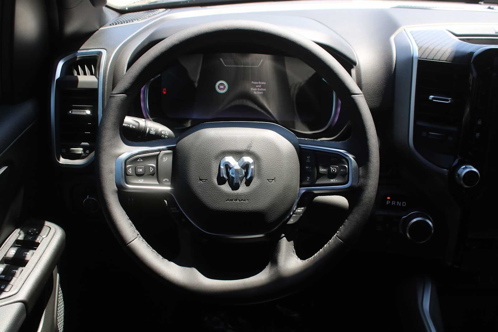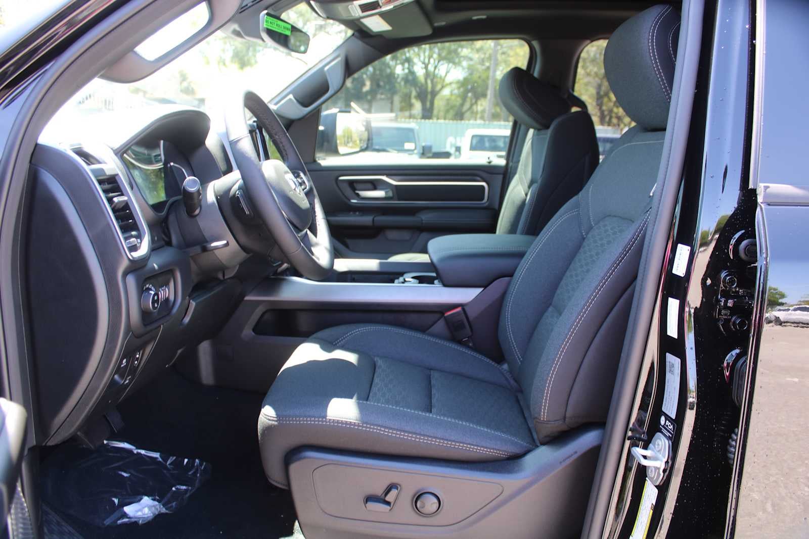 BIG HORN LEVEL 2 EQUIPMENT GROUP SiriusXM Radio Service, Power Adjustable Pedals, Leather Wrapped Steering Wheel, 12 Touchscreen Display, Glove Box Lamp, Auto Power-Folding Mirrors, 115V Auxiliary Rear Power Outlet, Media Hub w/2 Charge Only USBs, Heated Front Seats, Security Alarm, Black Premium Power Mirrors, Premium Overhead Console, 9 Amplified Speakers w/Subwoofer, Disassociated Touchscreen Display, Body Color Fender Flares, Remote Tailgate Release, 115V Auxiliary Power Outlet, LED Dome Lamp w/On/Off Switch, Universal Garage Door Opener, 2nd Row In Floor Storage Bins, Sun Visors w/Illuminated Vanity Mirrors, LED Footwell Lighting, Rear Window Defroster, Rear View Auto Dim Mirror, Rear Power Sliding Window, GPS Navigation, Overhead LED Lamps, Wheels: 20 x 9 Aluminum Chrome Clad, ENGINE: 5.7L V8 HEMI MDS VVT ETORQUE Active Noise Control System, Heavy Duty Engine Cooling, Passive Tuned Mass Damper, GVWR: 7,100 lbs, Dual Rear Exhaust w/Bright Tips, G/T Exhaust, 18 Aluminum Spare Wheel, DUAL-PANE PANORAMIC SUNROOF Dome Dual LED Reading Lamp, NIGHT EDITION Tires: 275/55R20 OWL All Season, Bridgestone Brand Tires, Accent Color Premium Power Mirrors, Exterior Mirrors w/Supplemental Signals, Black Headlamp Bezels, Exterior Mirrors Courtesy Lamps, Grille Black Surround Black Mesh, Auto Power-Folding Mirrors, Wheels: 20 x 9.0 Aluminum Painted Clad, Auto Dim Exterior Driver Mirror, Black Exterior Truck Badging, Anti-Spin Differential Rear Axle, Accent Color Door Handles, Accent Color Tailgate Handle, Black Interior Accents, Dual Exhaust w/Black Tips, Body Color Front Bumper, Body Color Rear Bumper w/Step Pads, Black Tail Lamp Bezels, RAM Grille Badge - Black, Black Painted Exterior Mirrors Caps, MOPAR FRONT & REAR RUBBER FLOOR MATS, TRANSMISSION: 8-SPEED AUTOMATIC (8HP75). Ram Big Horn with Diamond Black Crystal Pearlcoat exterior and Black interior features a 8 Cylinder Engine with 395 HP at 5600 RPM*.