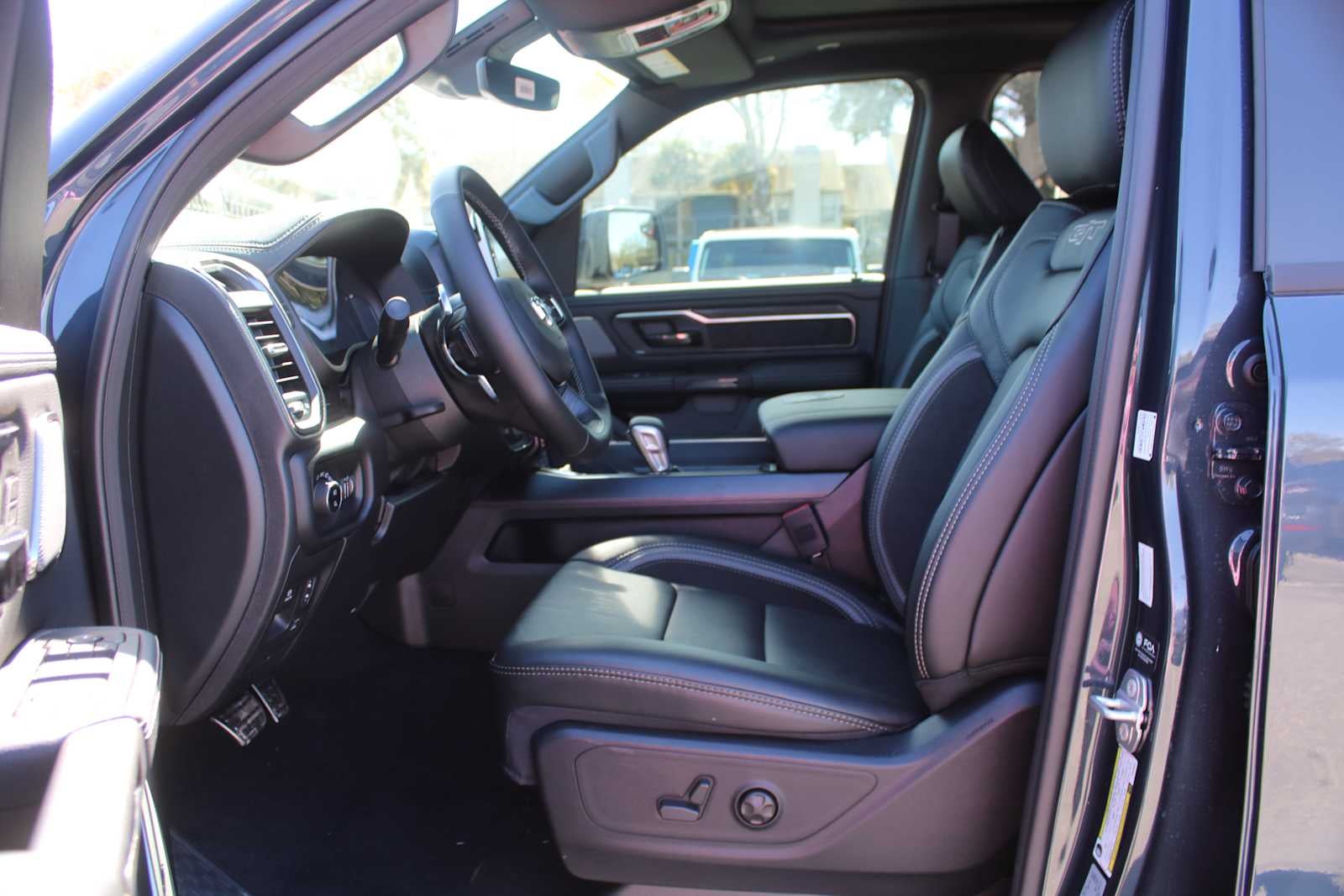 G/T PACKAGE Floor Console, Under Seat Lighting, G/T Decal, Leather Wrapped Shift Knob, Leather-Wrapped Steering Wheel, Steering Wheel Mounted Shift Control, G/T Exhaust, GT Interior Theme, MOPAR Bright Pedal Kit, Performance Pages, REBEL LEVEL 2 EQUIPMENT GROUP Power Adjustable Pedals w/Memory, Front Passenger Interactive Display, Power 2-Way Passenger Lumbar Adjust, Auto Power-Folding Mirrors, 115V Auxiliary Rear Power Outlet, Media Hub w/2 Charge Only USBs, Proximity Approach/Departure Lamps, Power Adjust 8-Way Front Passenger Seat, Security Alarm, Dual Wireless Charging Pad, harman/kardon® 19 Speaker Premium Sound, Rear Window Defroster, Rain Sensitive Windshield Wipers, Auto Dim Exterior Driver Mirror, Accent Color Door Handles, Heated Second Row Seats, Black Painted Exterior Mirrors Caps, Exterior Mirrors Approach Lamps, Smartphone As A Key Capable, 14.4 Touchscreen Display, Accent Color Premium Power Mirrors, Exterior Mirrors w/Supplemental Signals, Exterior Mirrors Courtesy Lamps, Radio: Uconnect 5 Nav w/14.4, 4-CORNER AIR SUSPENSION, DUAL-PANE PANORAMIC SUNROOF Dome Dual LED Reading Lamp, TRANSMISSION: 8-SPEED AUTOMATIC (8HP75) (STD), ENGINE: 3.0L I6 HURRICANE SO TWIN TURBO ESS (STD). Ram Rebel with Forged Blue Metallic exterior and Black interior features a Straight 6 Cylinder Engine with 420 HP at 5200 RPM*.