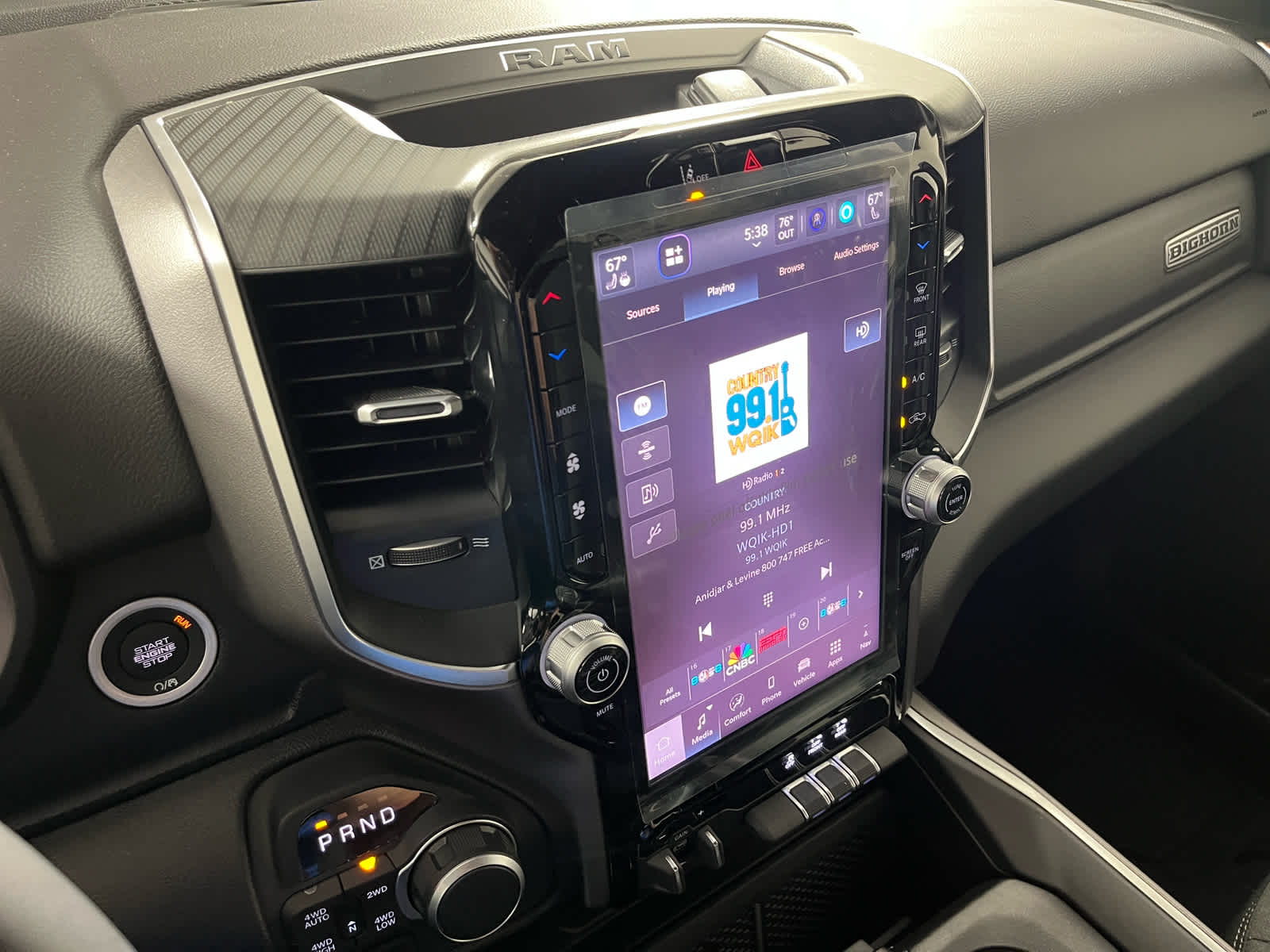 BIG HORN LEVEL 2 EQUIPMENT GROUP SiriusXM Radio Service, Power Adjustable Pedals, Leather Wrapped Steering Wheel, 12 Touchscreen Display, Glove Box Lamp, Auto Power-Folding Mirrors, 115V Auxiliary Rear Power Outlet, Media Hub w/2 Charge Only USBs, Heated Front Seats, Security Alarm, Black Premium Power Mirrors, Premium Overhead Console, 9 Amplified Speakers w/Subwoofer, Disassociated Touchscreen Display, Secondary Active Grille Shutters, Wireless Charging Pad, Body Color Fender Flares, Remote Tailgate Release, 115V Auxiliary Power Outlet, LED Dome Lamp w/On/Off Switch, Universal Garage Door Opener, 2nd Row In Floor Storage Bins, Sun Visors w/Illuminated Vanity Mirrors, LED Footwell Lighting, Rear Window Defroster, Rear View Auto Dim Mirror, Rear Power Sliding Window, GPS Navigation, ENGINE: 3.0L I6 HURRICANE SO TWIN TURBO ESS Aux Battery, 700 Amp Maintenance Free Battery, Active Noise Control System, GVWR: 7,100 lbs, 3.55 Rear Axle Ratio, Dual Rear Exhaust w/Bright Tips, Start-Stop Dual Battery System, 230 Amp Alternator, NIGHT EDITION Tires: 275/55R20 OWL All Season, Bridgestone Brand Tires, Accent Color Premium Power Mirrors, Exterior Mirrors w/Supplemental Signals, Black Headlamp Bezels, Exterior Mirrors Courtesy Lamps, Grille Black Surround Black Mesh, Auto Power-Folding Mirrors, Wheels: 20 x 9.0 Aluminum Painted Clad, Auto Dim Exterior Driver Mirror, Black Exterior Truck Badging, Anti-Spin Differential Rear Axle, Accent Color Door Handles, Accent Color Tailgate Handle, Black Interior Accents, Dual Exhaust w/Black Tips, Body Color Front Bumper, Body Color Rear Bumper w/Step Pads, Black Tail Lamp Bezels, RAM Grille Badge - Black, Black Painted Exterior Mirrors Caps, TRANSMISSION: 8-SPEED AUTOMATIC (8HP75).