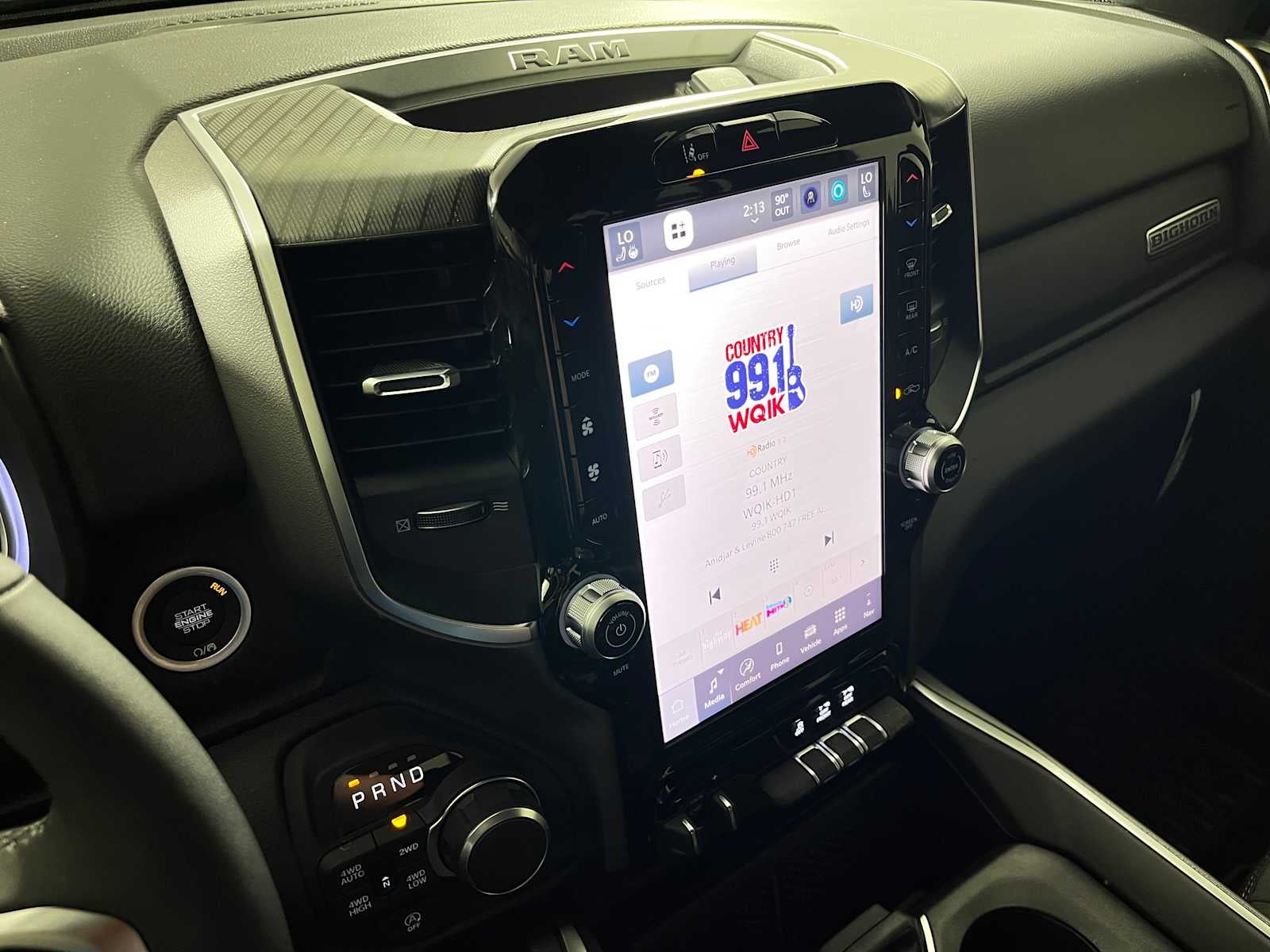 BIG HORN LEVEL 2 EQUIPMENT GROUP SiriusXM Radio Service, Power Adjustable Pedals, Leather Wrapped Steering Wheel, 12 Touchscreen Display, Glove Box Lamp, Auto Power-Folding Mirrors, 115V Auxiliary Rear Power Outlet, Media Hub w/2 Charge Only USBs, Heated Front Seats, Security Alarm, Black Premium Power Mirrors, Premium Overhead Console, 9 Amplified Speakers w/Subwoofer, Disassociated Touchscreen Display, Body Color Fender Flares, Remote Tailgate Release, 115V Auxiliary Power Outlet, LED Dome Lamp w/On/Off Switch, Universal Garage Door Opener, 2nd Row In Floor Storage Bins, Sun Visors w/Illuminated Vanity Mirrors, LED Footwell Lighting, Rear Window Defroster, Rear View Auto Dim Mirror, Rear Power Sliding Window, GPS Navigation, Overhead LED Lamps, Wheels: 20 x 9 Aluminum Chrome Clad, ENGINE: 3.0L I6 HURRICANE SO TWIN TURBO ESS Aux Battery, 700 Amp Maintenance Free Battery, Active Noise Control System, GVWR: 7,100 lbs, 3.55 Rear Axle Ratio, Dual Rear Exhaust w/Bright Tips, Start-Stop Dual Battery System, 230 Amp Alternator, NIGHT EDITION Tires: 275/55R20 OWL All Season, Bridgestone Brand Tires, Accent Color Premium Power Mirrors, Exterior Mirrors w/Supplemental Signals, Black Headlamp Bezels, Exterior Mirrors Courtesy Lamps, Grille Black Surround Black Mesh, Auto Power-Folding Mirrors, Wheels: 20 x 9.0 Aluminum Painted Clad, Auto Dim Exterior Driver Mirror, Black Exterior Truck Badging, Anti-Spin Differential Rear Axle, Accent Color Door Handles, Accent Color Tailgate Handle, Black Interior Accents, Dual Exhaust w/Black Tips, Body Color Front Bumper, Body Color Rear Bumper w/Step Pads, Black Tail Lamp Bezels, RAM Grille Badge - Black, Black Painted Exterior Mirrors Caps, MOPAR FRONT & REAR RUBBER FLOOR MATS, TRANSMISSION: 8-SPEED AUTOMATIC (8HP75).