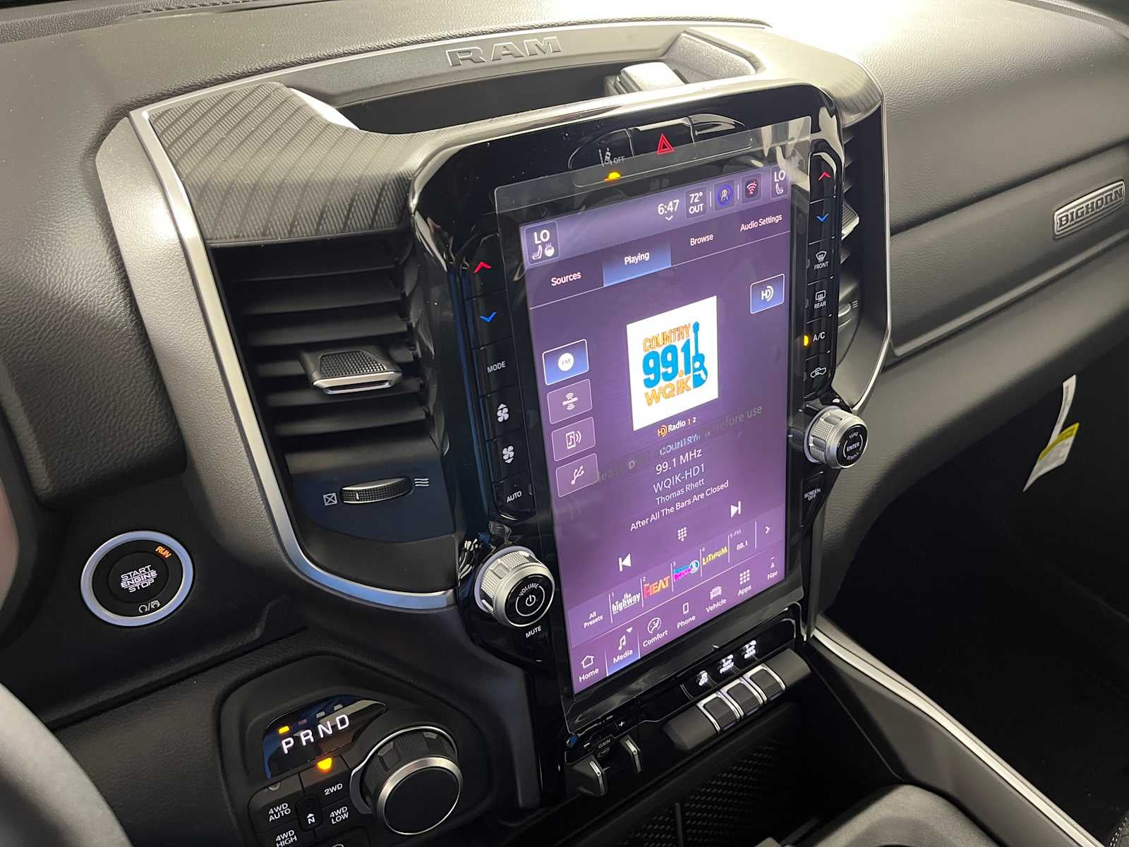 BIG HORN LEVEL 2 EQUIPMENT GROUP SiriusXM Radio Service, Power Adjustable Pedals, Leather Wrapped Steering Wheel, 12 Touchscreen Display, Glove Box Lamp, Auto Power-Folding Mirrors, 115V Auxiliary Rear Power Outlet, Media Hub w/2 Charge Only USBs, Heated Front Seats, Security Alarm, Black Premium Power Mirrors, Premium Overhead Console, 9 Amplified Speakers w/Subwoofer, Disassociated Touchscreen Display, Body Color Fender Flares, Remote Tailgate Release, 115V Auxiliary Power Outlet, LED Dome Lamp w/On/Off Switch, Universal Garage Door Opener, 2nd Row In Floor Storage Bins, Sun Visors w/Illuminated Vanity Mirrors, LED Footwell Lighting, Rear Window Defroster, Rear View Auto Dim Mirror, Rear Power Sliding Window, GPS Navigation, Overhead LED Lamps, Wheels: 20 x 9 Aluminum Chrome Clad, ENGINE: 3.0L I6 HURRICANE SO TWIN TURBO ESS Aux Battery, 700 Amp Maintenance Free Battery, Active Noise Control System, GVWR: 7,100 lbs, 3.55 Rear Axle Ratio, Dual Rear Exhaust w/Bright Tips, Start-Stop Dual Battery System, 230 Amp Alternator, NIGHT EDITION Tires: 275/55R20 OWL All Season, Bridgestone Brand Tires, Accent Color Premium Power Mirrors, Exterior Mirrors w/Supplemental Signals, Black Headlamp Bezels, Exterior Mirrors Courtesy Lamps, Grille Black Surround Black Mesh, Auto Power-Folding Mirrors, Wheels: 20 x 9.0 Aluminum Painted Clad, Auto Dim Exterior Driver Mirror, Black Exterior Truck Badging, Anti-Spin Differential Rear Axle, Accent Color Door Handles, Accent Color Tailgate Handle, Black Interior Accents, Dual Exhaust w/Black Tips, Body Color Front Bumper, Body Color Rear Bumper w/Step Pads, Black Tail Lamp Bezels, RAM Grille Badge - Black, Black Painted Exterior Mirrors Caps, MOPAR FRONT & REAR RUBBER FLOOR MATS, TRANSMISSION: 8-SPEED AUTOMATIC (8HP75).