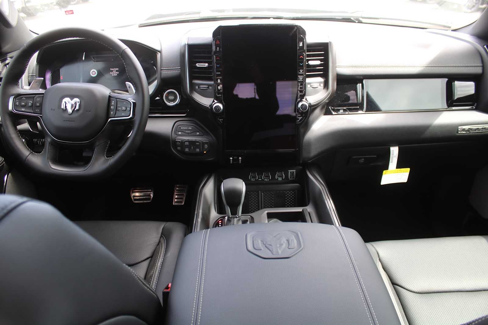 G/T PACKAGE Floor Console, Under Seat Lighting, G/T Decal, Leather Wrapped Shift Knob, Leather-Wrapped Steering Wheel, Steering Wheel Mounted Shift Control, G/T Exhaust, GT Interior Theme, MOPAR Bright Pedal Kit, Performance Pages, REBEL LEVEL 2 EQUIPMENT GROUP Power Adjustable Pedals w/Memory, Front Passenger Interactive Display, Power 2-Way Passenger Lumbar Adjust, Auto Power-Folding Mirrors, 115V Auxiliary Rear Power Outlet, Media Hub w/2 Charge Only USBs, Proximity Approach/Departure Lamps, Power Adjust 8-Way Front Passenger Seat, Security Alarm, Dual Wireless Charging Pad, harman/kardon® 19 Speaker Premium Sound, Rear Window Defroster, Rain Sensitive Windshield Wipers, Auto Dim Exterior Driver Mirror, Accent Color Door Handles, Heated Second Row Seats, Black Painted Exterior Mirrors Caps, Exterior Mirrors Approach Lamps, Smartphone As A Key Capable, 14.4 Touchscreen Display, Accent Color Premium Power Mirrors, Exterior Mirrors w/Supplemental Signals, Exterior Mirrors Courtesy Lamps, Radio: Uconnect 5 Nav w/14.4, 4-CORNER AIR SUSPENSION, DUAL-PANE PANORAMIC SUNROOF Dome Dual LED Reading Lamp, TRANSMISSION: 8-SPEED AUTOMATIC (8HP75) (STD), ENGINE: 3.0L I6 HURRICANE SO TWIN TURBO ESS (STD). Ram Rebel with Granite Crystal Metallic Clearcoat exterior and Black interior features a Straight 6 Cylinder Engine with 420 HP at 5200 RPM*.