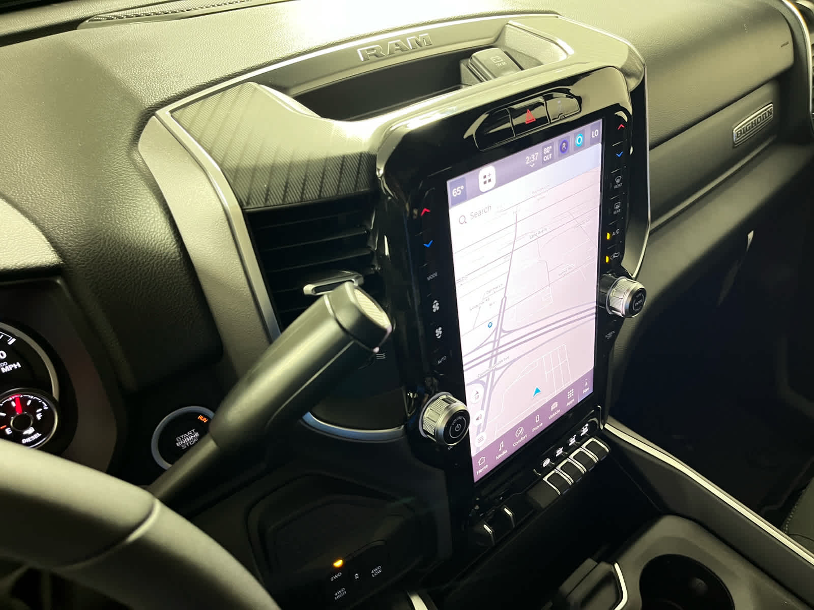 ENGINE: 6.7L I6 CUMMINS HO TURBO DIESEL Selective Catalytic Reduction (Urea), Dual 730 Amp Maintenance Free Batteries, Cummins Turbo Diesel Badge, Heavy Duty Engine Cooling, Diesel Exhaust Brake, Supplemental Heater, 3.42 Axle Ratio, Front Bumper Sight Shields, Capless Fuel Fill w/o Discriminator, GVWR: 11,040 lbs, BIG HORN LEVEL 1 PLUS EQUIPMENT GROUP Emergency Vehicle Alert System (EVAS), 12 Touchscreen Display, Glove Box Lamp, Auto Power-Folding Mirrors, Footwell Courtesy Lamp, Anti-Spin Differential Rear Axle, MOPAR Deployable Bed Step, Alexa Built-In, Forward & Reverse Utility Lights, Locking Lower Glove Box, Remote Start System, 9 Alpine Speakers w/Subwoofer, Disassociated Touchscreen Display, Dual Glove Boxes, 2nd Row In Floor Storage Bins, Rear View Auto Dim Mirror, Rear Dome w/On/Off Switch Lamp, LED Bed Lighting, GPS Navigation, SiriusXM w/360L, Connected Travel & Traffic Services, Foam Bottle Insert (Door Trim Panel), Big Horn IP Badge, Off-Road Info Pages, Trailer Tow Pages, HD Radio, Radio: Uconnect 5 Nav w/12.0 Display, Power Heated Folding Telescopic Mirrors, Steering Wheel Mounted, NIGHT EDITION Gloss Black Nostrils/Mic Black Grille, Tires: LT285/60R20E OWL On/Off Road, Black Exterior Truck Badging, Wheels: 20 x 8.0 Black Painted Aluminum, Body Color Grille-Surround, Black Interior Accents, Black Wheel Center Hub, Painted Front Bumper, Painted Rear Bumper, BLACK, PREMIUM CLOTH BUCKET SEATS Bucket Seats, Power Adjust 8-Way Driver Seat, Folding Flat Load Floor Storage, Rear 60/40 Folding Seat, Front Seat Back Map Pockets, Power 2-Way Driver Lumbar Adjust, Full Length Upgraded Floor Console, MOPAR FRONT & REAR RUBBER FLOOR MATS, TRANSMISSION: 8-SPEED TORQUEFLITE HD AUTOMATIC.