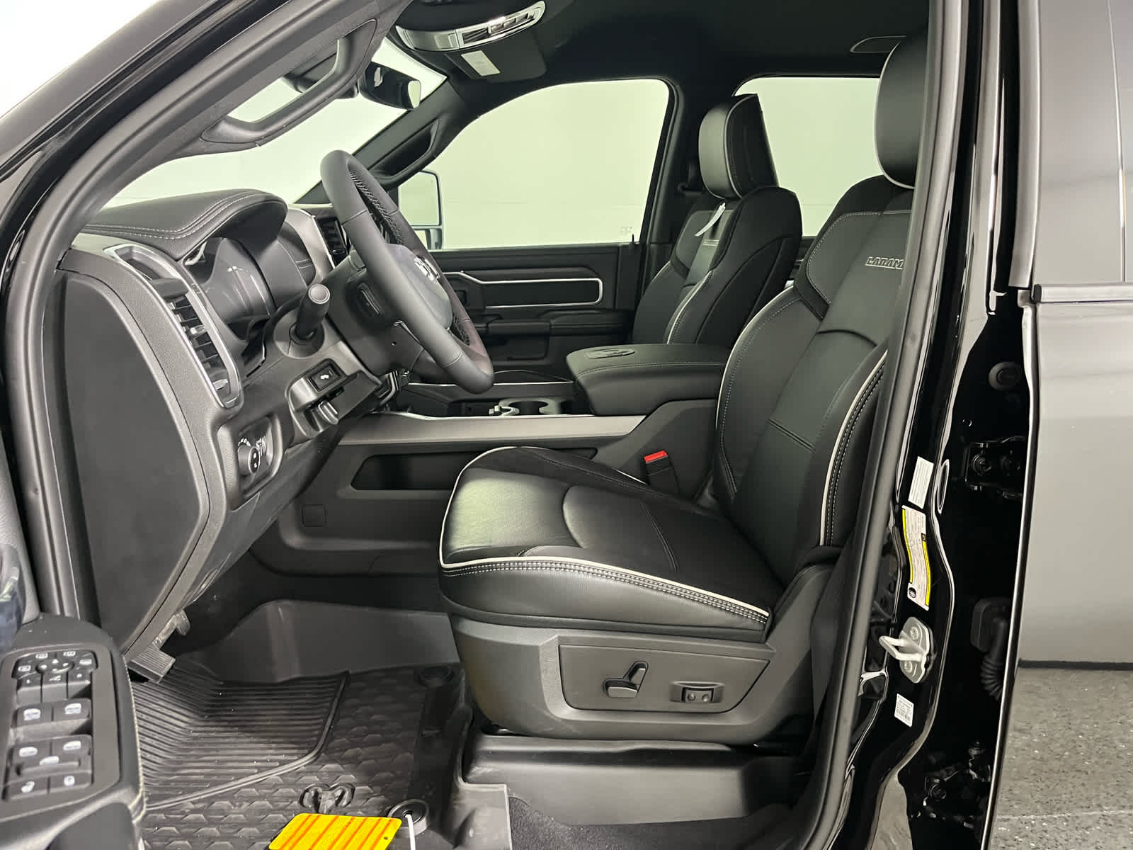ENGINE: 6.7L I6 CUMMINS HO TURBO DIESEL Selective Catalytic Reduction (Urea), Dual 730 Amp Maintenance Free Batteries, Cummins Turbo Diesel Badge, Heavy Duty Engine Cooling, Current Generation Engine Controller, Diesel Exhaust Brake, Supplemental Heater, 3.42 Axle Ratio, Front Bumper Sight Shields, Capless Fuel Fill w/o Discriminator, LARAMIE LEVEL 1 PLUS EQUIPMENT GROUP CTR Stop Lamp w/Cargo View Camera, Rain Sensitive Windshield Wipers, Power Adjustable Pedals w/Memory, LED Bed Lighting, Traffic Sign Recognition, Adaptive Steering System, Auto Dimming Exterior Mirrors, Drowsy Driver Detection, MOPAR Deployable Bed Step, Foam Bottle Insert (Door Trim Panel), Active Lane Management System, Power Heat Fold Memory Telescopic Mirrors, MOPAR Spray In Bedliner, Remote Tailgate Release, Auto High Beam Headlamp Control, Exterior Mirrors w/Memory, 2nd Row In Floor Storage Bins, Auto Dimming Exterior Passenger Mirror, Auto Adjust In Reverse Exterior Mirrors, DUAL REAR WHEELS Clearance Lamps, Tires: LT235/80R17E BSW All Season, 17 Steel Spare Wheel, Box & Rear Fender Clearance Lamps, Center Hub, 6000# Front Axle w/Hub Ext, Wheels: 17 x 6.0 Polished Aluminum, Nexen Brand Tires, GVWR: 14,000 lb, CHROME FLAT CAB-LENGTH SIDE STEPS, MOPAR FRONT & REAR RUBBER FLOOR MATS, TRANSMISSION: 8-SPEED TORQUEFLITE HD AUTOMATIC, BLACK, LEATHER TRIMMED BUCKET SEATS Bucket Seats, Dual Wireless Charging Pad, Full Length Upgraded Floor Console.