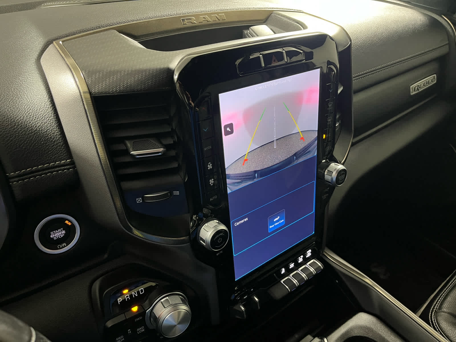 REBEL LEVEL 2 EQUIPMENT GROUP Power Adjustable Pedals, 12 Touchscreen Display, 115V Auxiliary Rear Power Outlet, Media Hub w/2 Charge Only USBs, Rear Underseat Compartment Storage, Heated Front Seats, Security Alarm, Black Premium Power Mirrors, Remote Start System, harman/kardon® 19 Speaker Premium Sound, Universal Garage Door Opener, 2nd Row In Floor Storage Bins, Sun Visors w/Illuminated Vanity Mirrors, Power 2-Way Driver Lumbar Adjust, Rear Window Defroster, Rain Sensitive Windshield Wipers, ParkSense Front/Rear Park Assist w/Stop, Rear Power Sliding Window, Rear Dome w/On/Off Switch Lamp, Power 8-Way Driver Seat, Auto Dim Exterior Driver Mirror, Accent Color Door Handles, Heated Steering Wheel, Foam Bottle Insert (Door Trim Panel), Radio: Uconnect 5 Nav w/12.0 Display, Exterior, ENGINE: 5.7L V8 HEMI MDS VVT ETORQUE Active Noise Control System, Heavy Duty Engine Cooling, Passive Tuned Mass Damper, Dual Exhaust w/Black Tips, GVWR: 7,100 lbs, HEMI Badge, 23 Gallon Fuel Tank, REBEL BUZZ MODEL 2 Black Front Bumper w/Black Plate, MOPAR Rebel Exterior Side Graphics, Grille Surround 2 Black Texture 3 Black, Monotone Paint, MOPAR Rebel Hood Decal, Wheels: 18 x 8.0 Gloss Black, RAM Grille Badge - Black, CLASS IV RECEIVER HITCH, TRANSMISSION: 8-SPEED AUTOMATIC (8HP75).