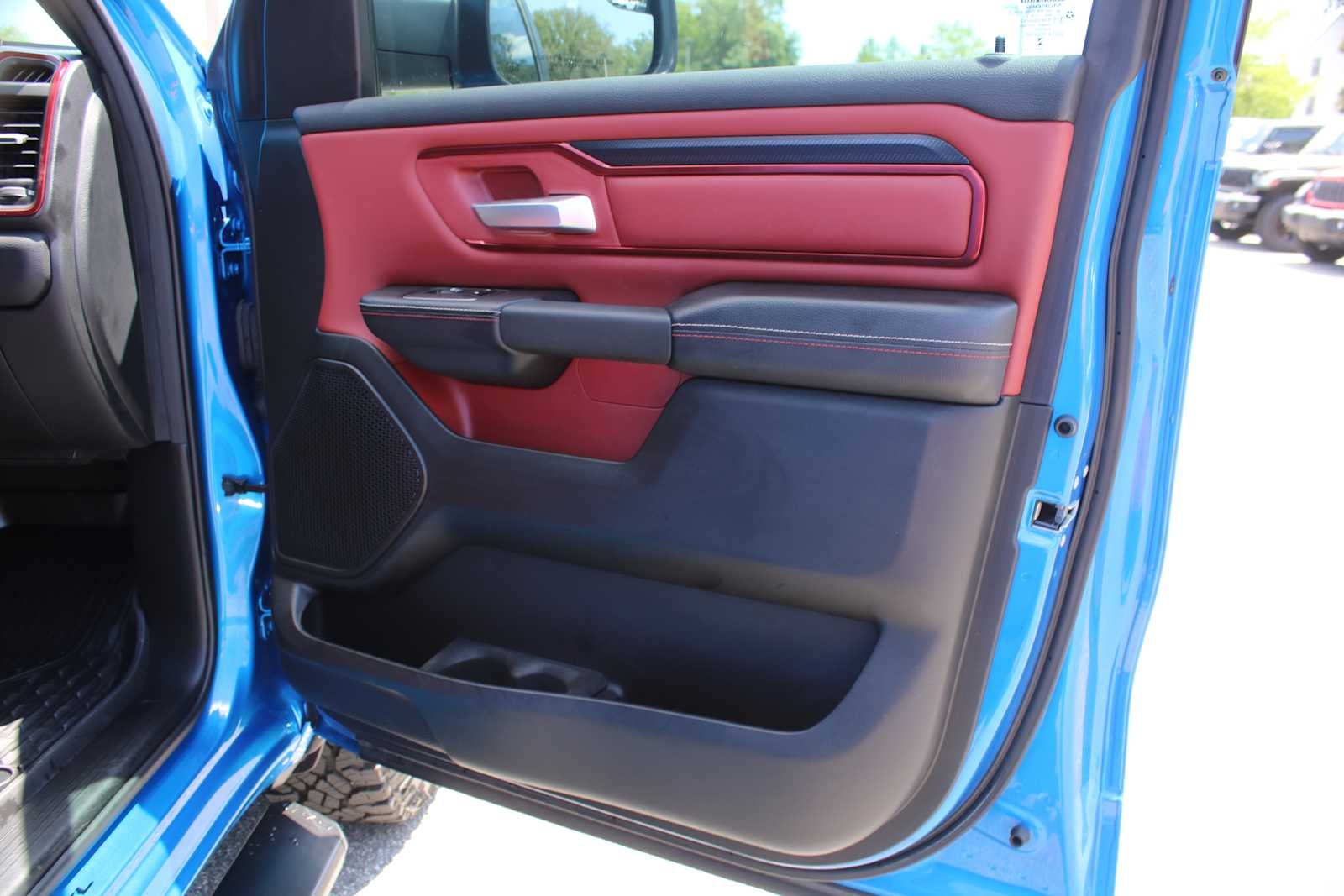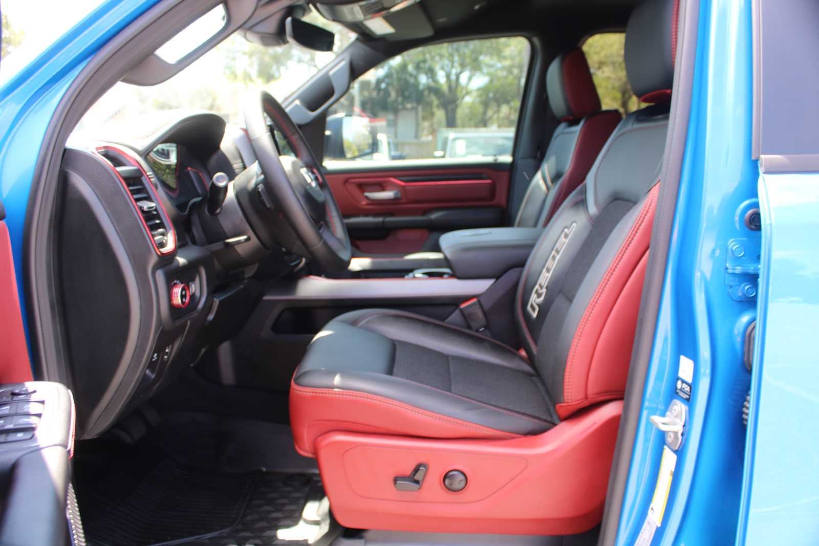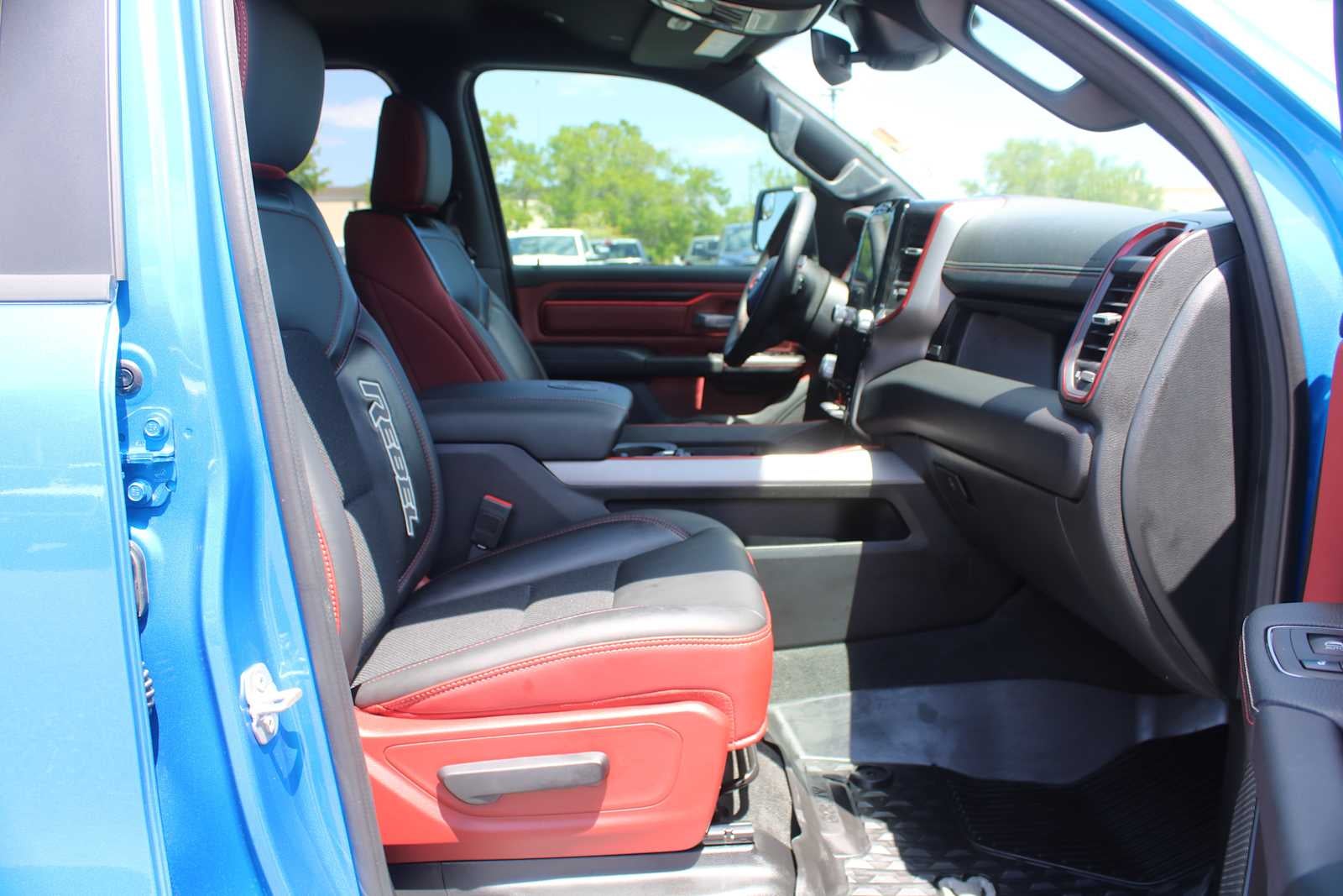 ENGINE: 5.7L V8 HEMI MDS VVT ETORQUE Active Noise Control System, Heavy Duty Engine Cooling, Passive Tuned Mass Damper, Dual Exhaust w/Black Tips, GVWR: 7,100 lbs, HEMI Badge, 23 Gallon Fuel Tank, REBEL LEVEL 1 EQUIPMENT GROUP Rear Window Defroster, Power Adjustable Pedals, Rear Power Sliding Window, Rear Dome w/On/Off Switch Lamp, Power 8-Way Driver Seat, Auto Dim Exterior Driver Mirror, Heated Front Seats, Foam Bottle Insert (Door Trim Panel), Black Premium Power Mirrors, 9 Amplified Speakers w/Subwoofer, Radio: Uconnect 5 Nav w/12.0 Display, Exterior Mirrors w/Supplemental Signals, Exterior Mirrors Courtesy Lamps, Universal Garage Door Opener, Power-Folding Mirrors, 2nd Row In Floor Storage Bins, Sun Visors w/Illuminated Vanity Mirrors, Power 2-Way Driver Lumbar Adjust, CLASS IV RECEIVER HITCH, TRANSMISSION: 8-SPEED AUTOMATIC (8HP75). Ram Rebel with Hydro Blue Pearlcoat exterior and Red/Black interior features a 8 Cylinder Engine with 395 HP at 5600 RPM*. Serviced here, Non-Smoker vehicle